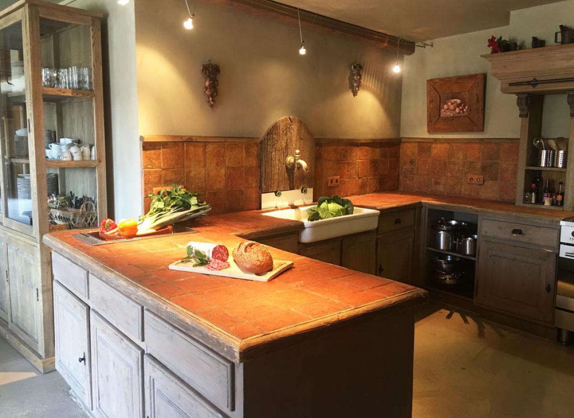 - 2 Tische für je 14 Gäste (Wohnzimmerseite, Küchenseite)
