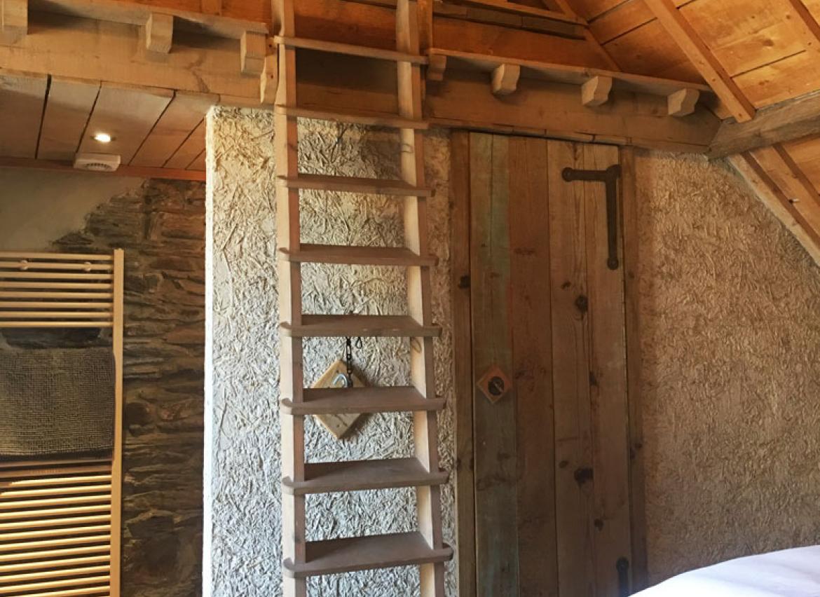 - 3 Schlafzimmer: 2-3 Personen, 2 Einzelbetten und 1 « Mezzanin-Bett » über Leiter zugänglich, TV, privates Duschbad mit Waschbecken + WC